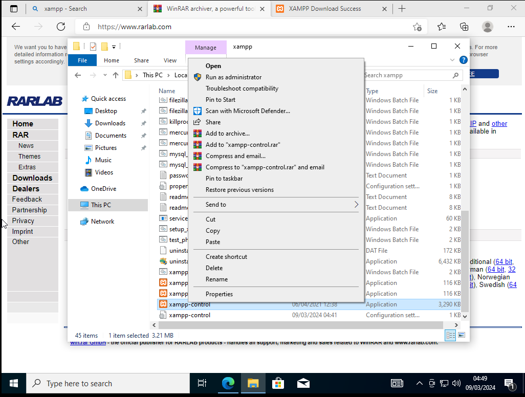 -> Right click on xampp-control