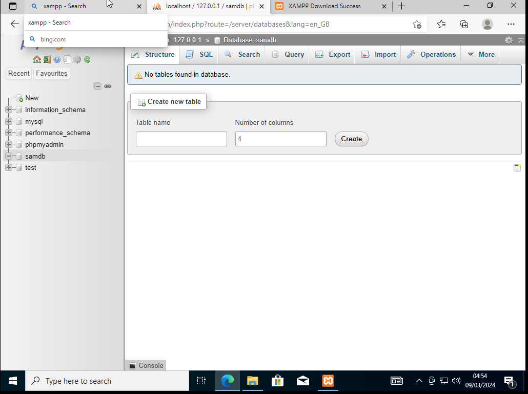 -> localhost/phpmyadmin