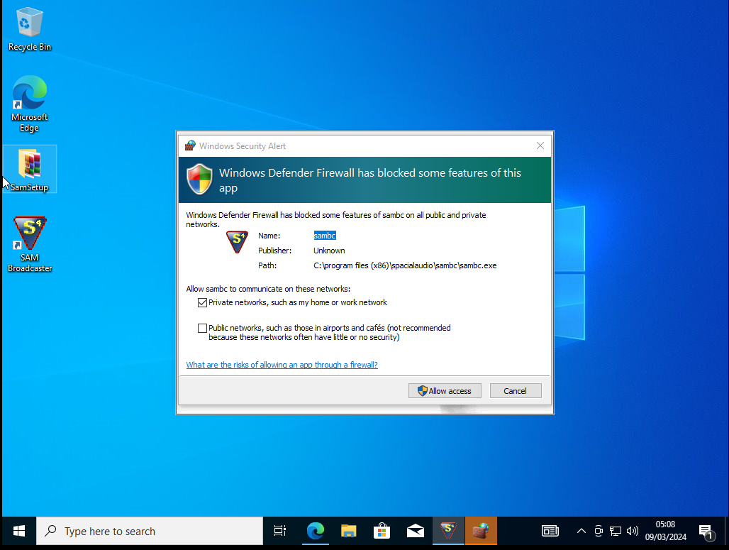 Setup SamBroadcaster